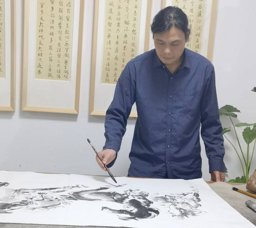 本报讯 如果说,桂林山水甲天下,那么专攻画马吴风之可谓“中华又一马”。他每天晚上在抖音平台现场免费教学画马,成为吴风之画马俱乐部,围观粉丝达万人。其画马不仅狂放飘逸,而且灵动神采,龙马精神跃然纸上,令人爱不释手。