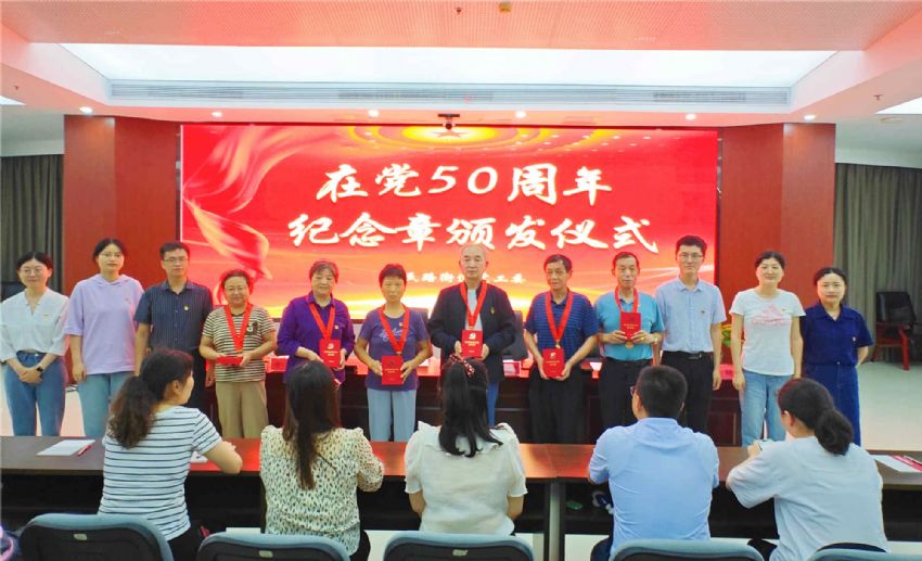 为庆祝中国共产党成立以来的辉煌历程,进一步弘扬党的光荣传统和优良作风,增强党员的荣誉感、使命感和归属感, 6月25日,安庆市迎江区人民路街道党工委举办“在党50周年纪念章颁发”活动。